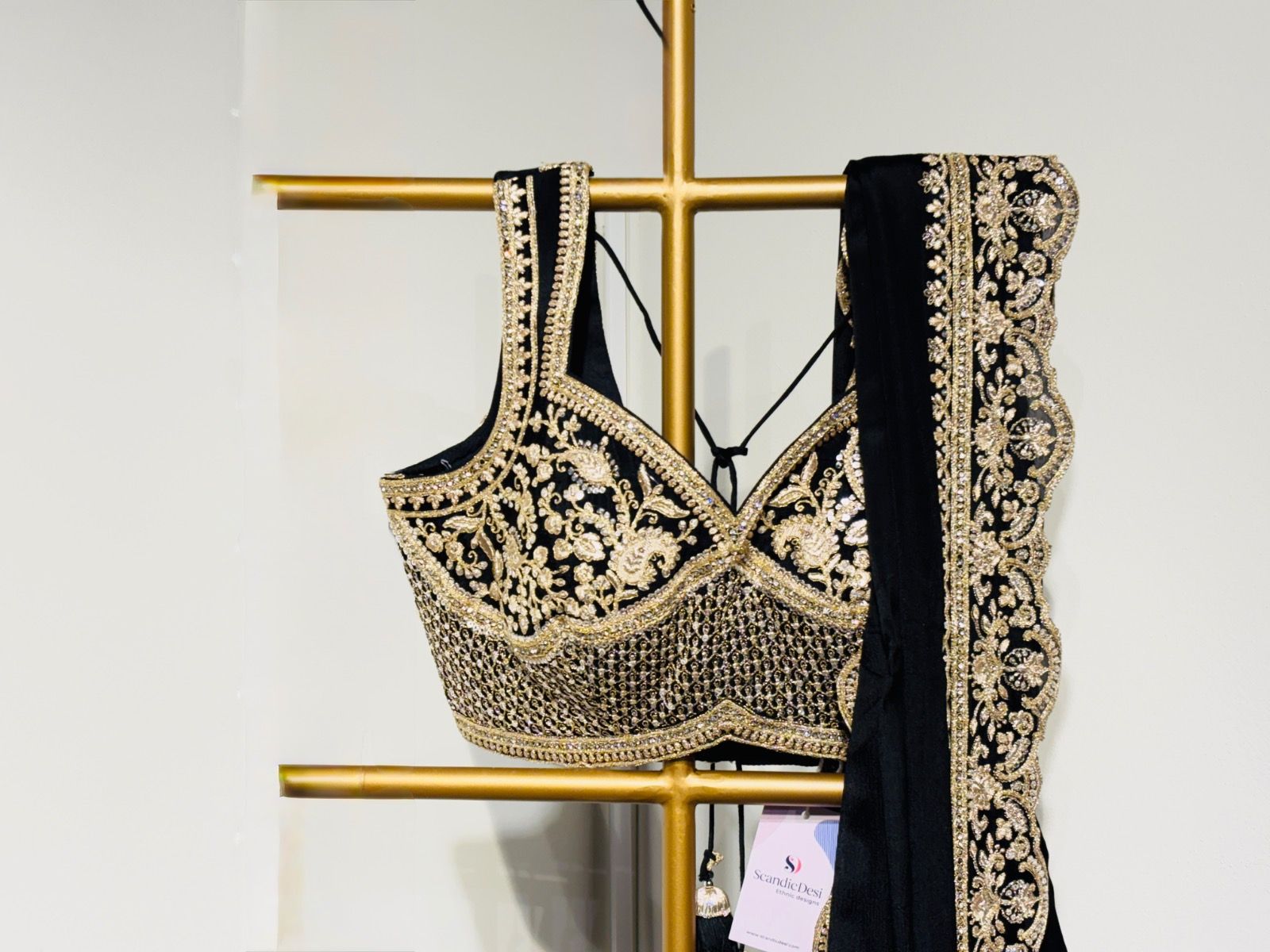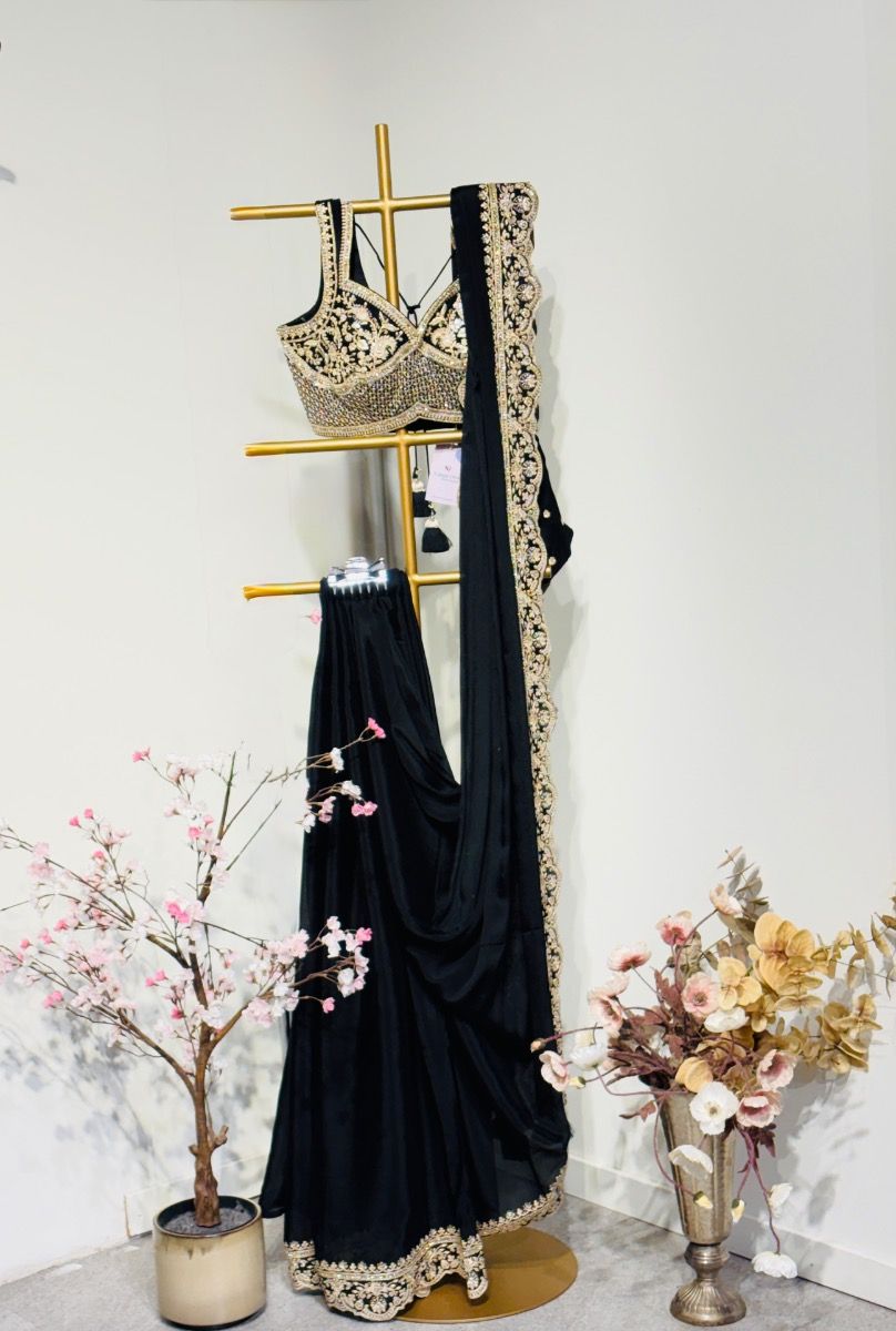 Black Chiffon Silk With Gold Embroidery Black Chiffon Silk With Gold Embroidery