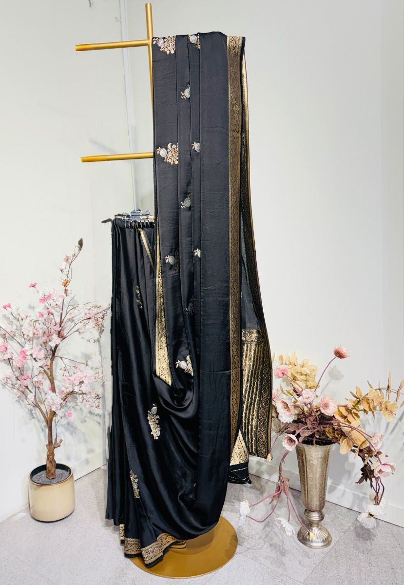 Black Satin Beneras With Flower Design Bordrer