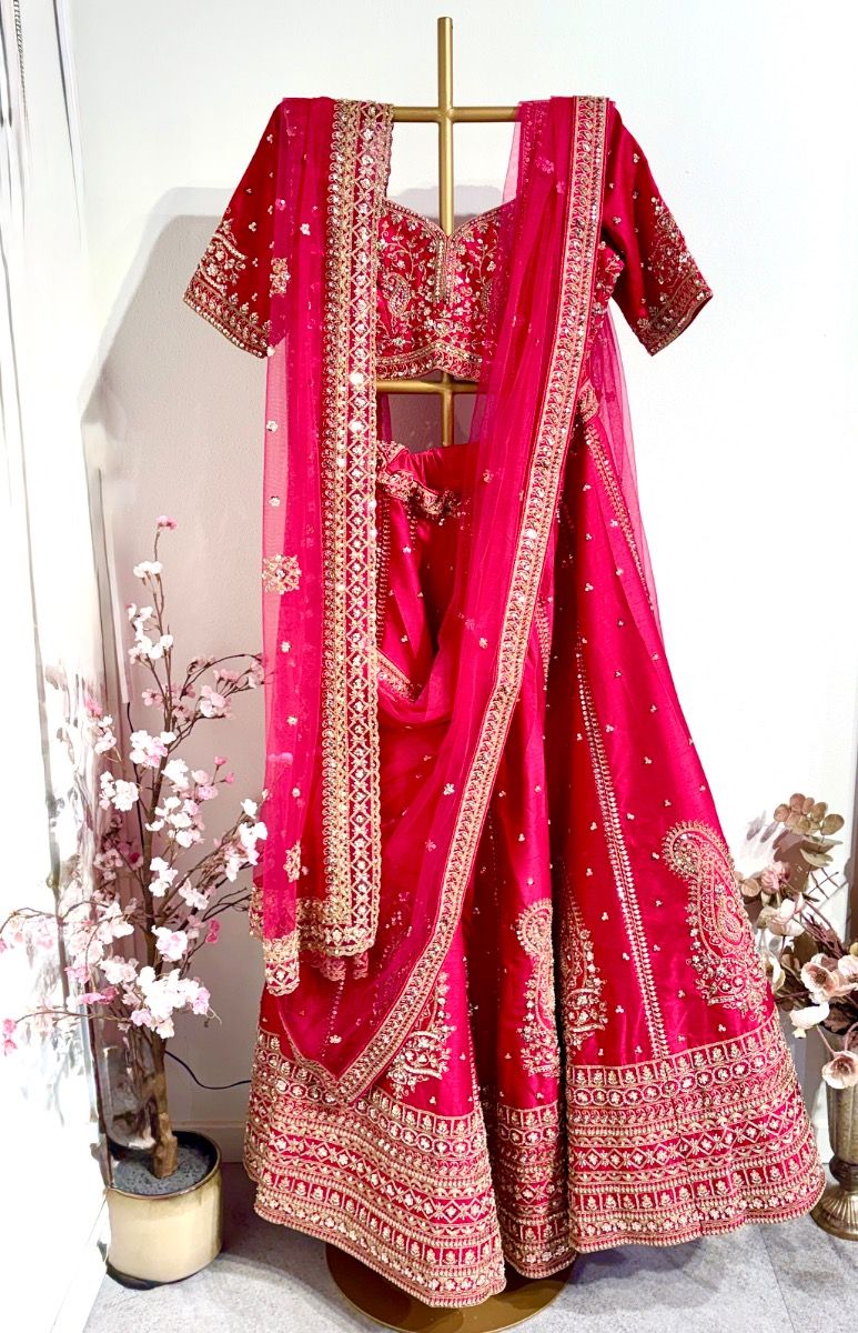 Bright Hot Pink Raw silk  Wedding Lehenga Bright Hot Pink Raw silk  Wedding Lehenga Bright Hot Pink Raw silk  Wedding Lehenga Bright Hot Pink Raw silk  Wedding Lehenga