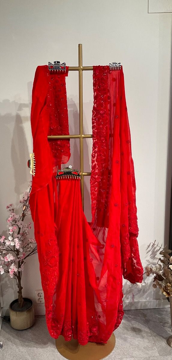 You're reviewing:Chilli Red soft organza silk saree with 3D flower design