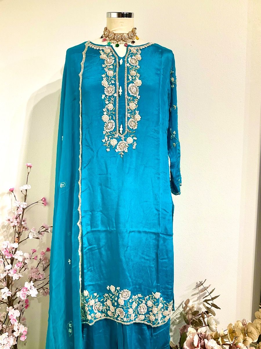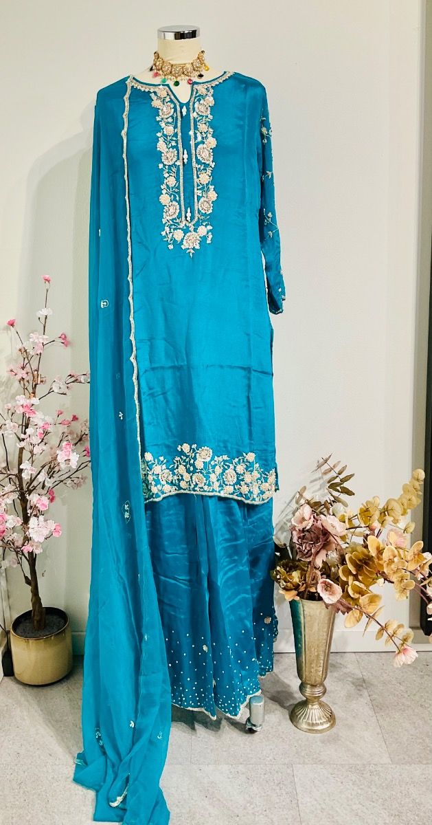 Copper Sulfate Blue silk Sharara Copper Sulfate Blue silk Sharara