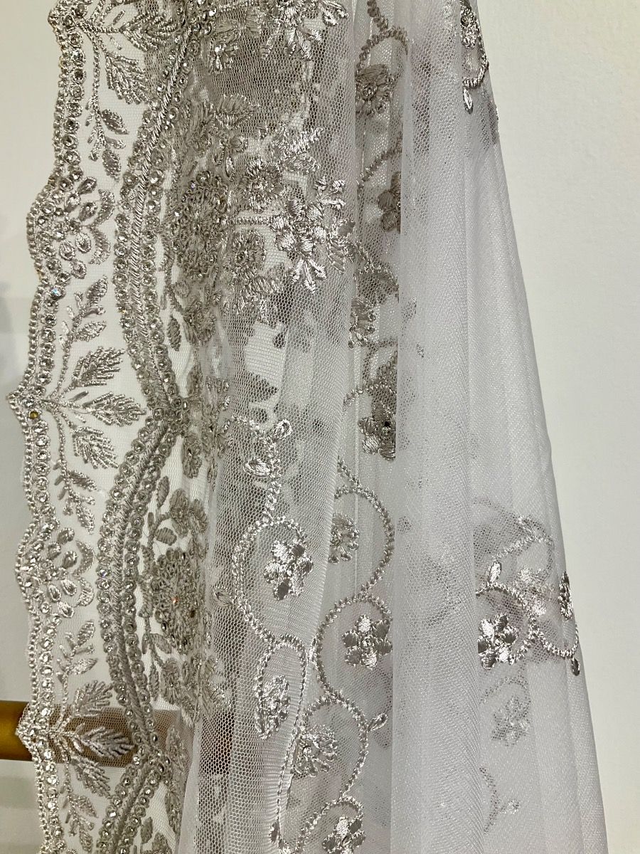 Gray net saree with embroidery Gray net saree with embroidery