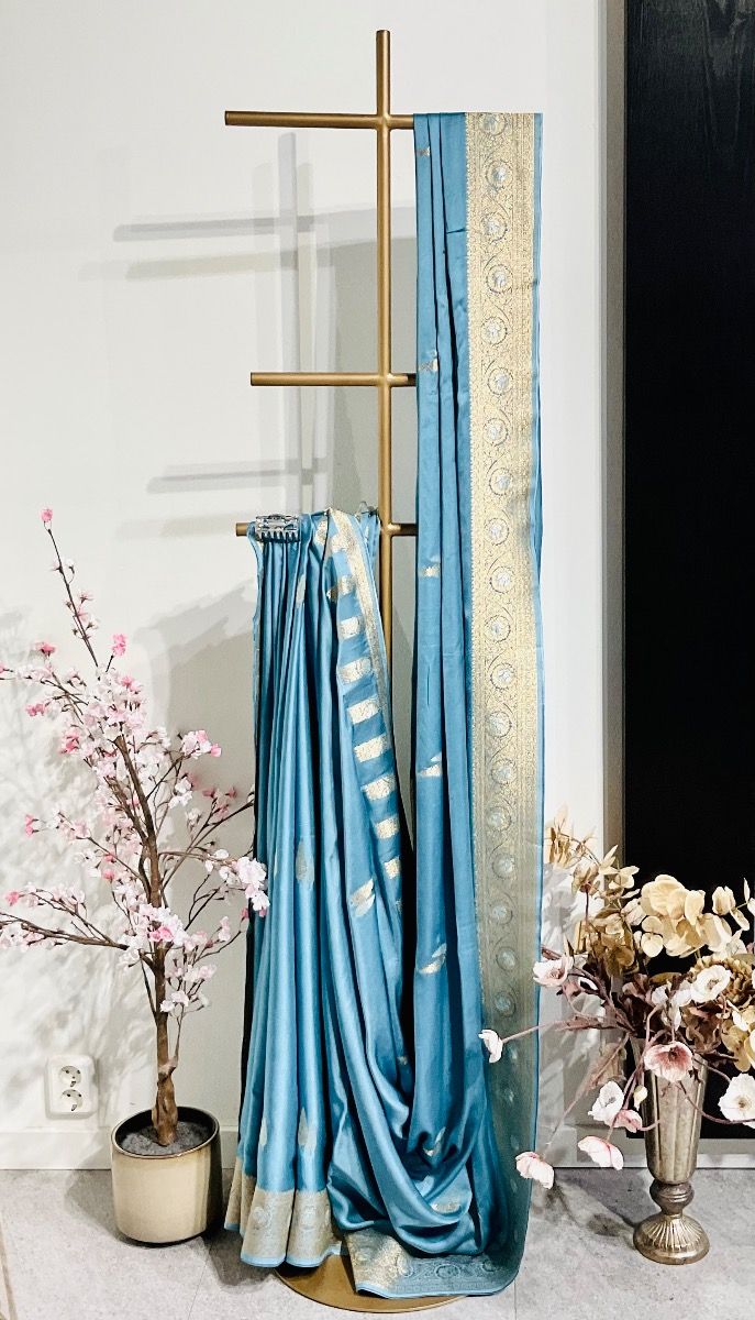 You're reviewing:Light Blue Satin Banarasi Saree