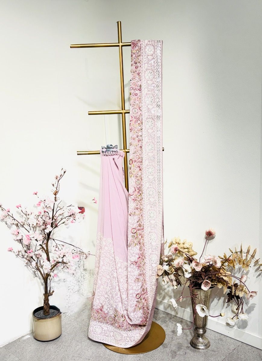 Lavander Gorget Chikankari Saree With Floral Border