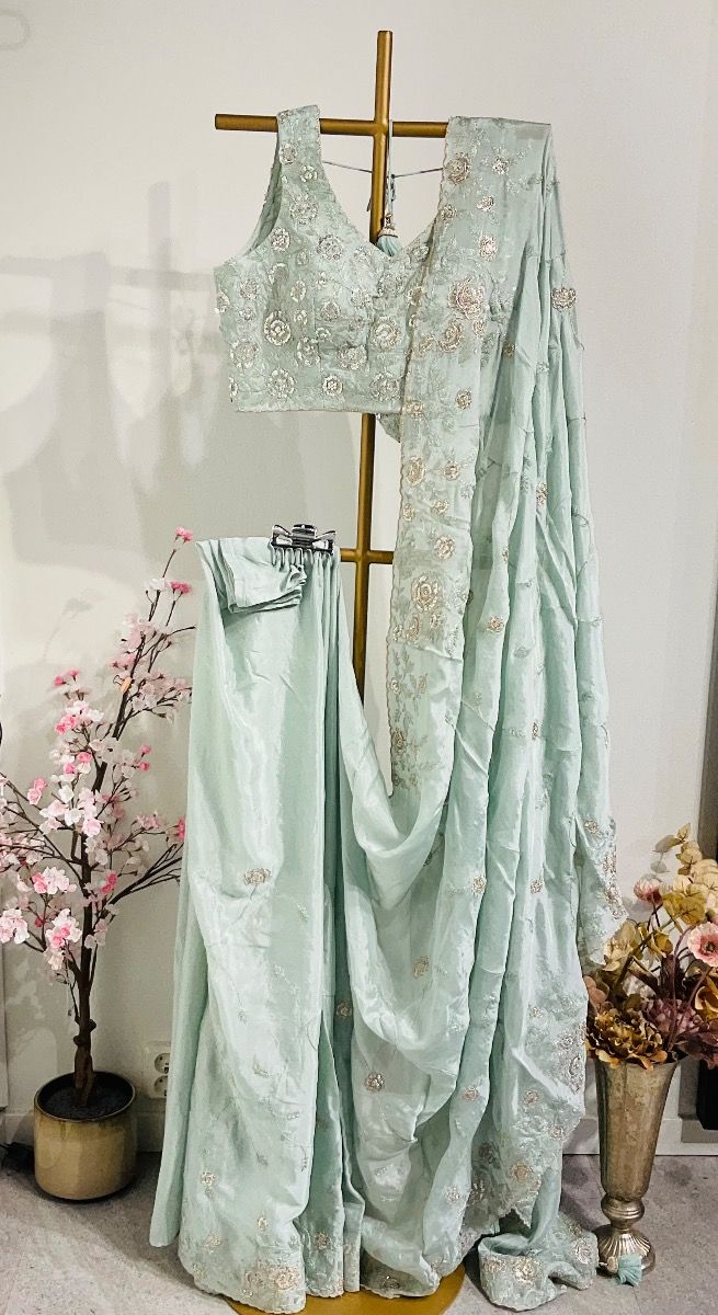 You're reviewing:Light Sea Green chiffon silk saree