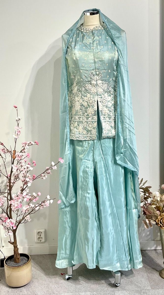 You're reviewing:Powder Blue Shimmer Peplum Set